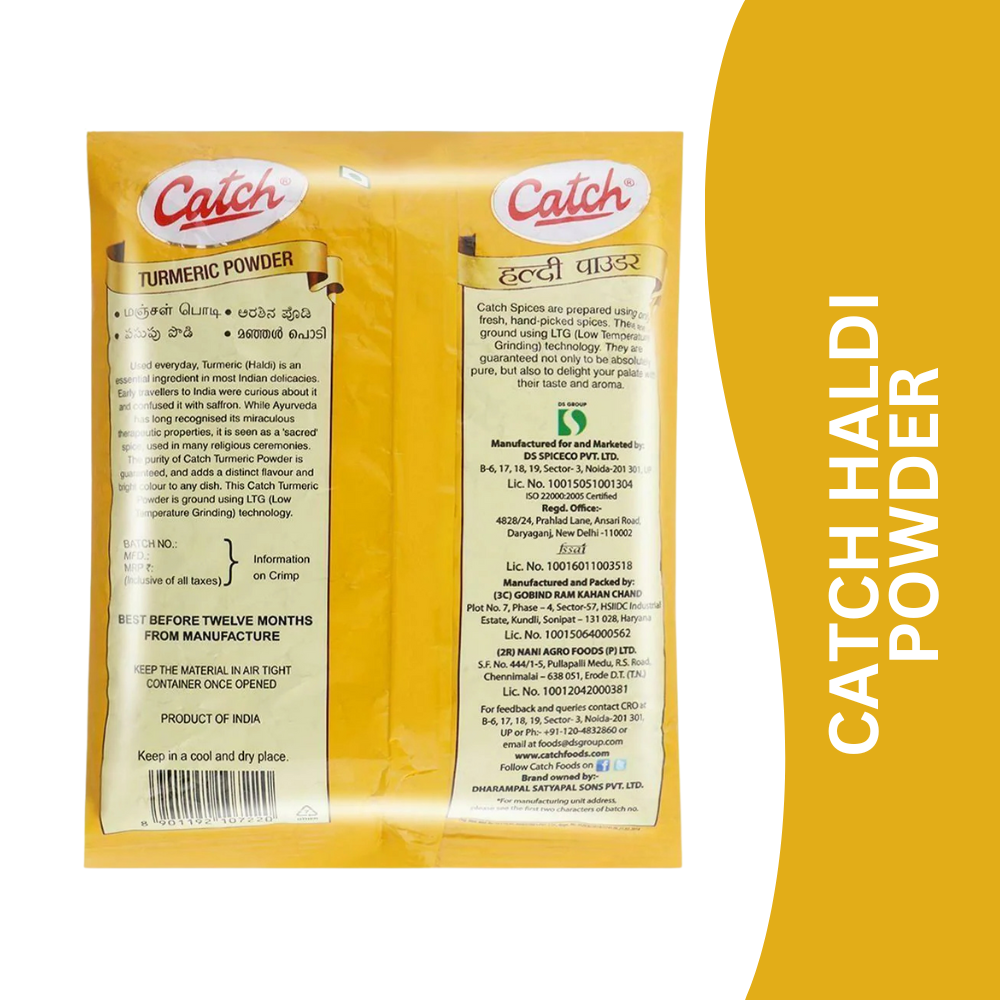 Catch Haldi (Turmeric) Powder is made from carefully selected, high-quality turmeric roots that are hygienically processed and finely ground to retain their natural colour, aroma, and goodness. An essential spice in Indian kitchens, it adds warmth, flavour, and a vibrant golden hue to a wide variety of dishes.
