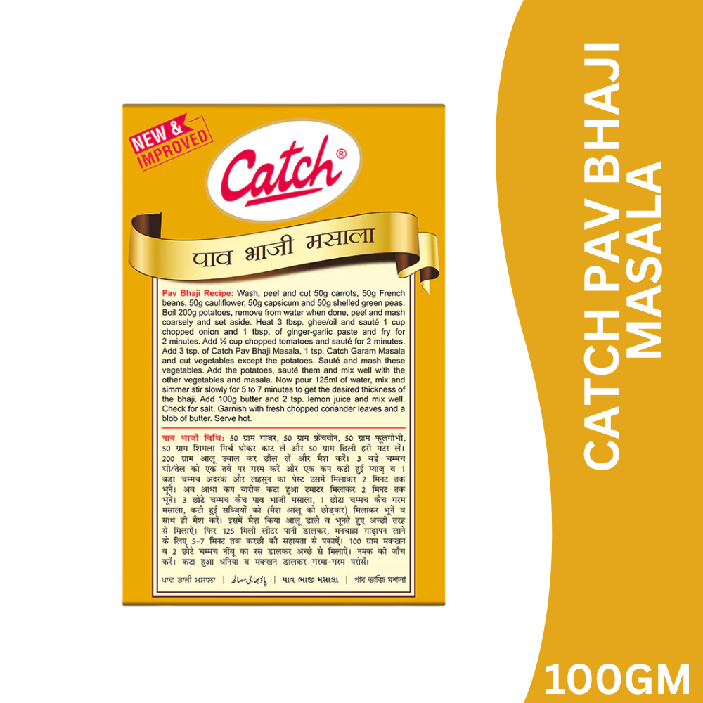 Catch Pav Bhaji Masala is a specially blended mix of premium spices crafted to deliver the signature taste, colour, and aroma of classic pav bhaji. With its perfect balance of spice and tang, this masala makes your bhaji flavourful, smooth, and irresistibly street-style—just like your favourite roadside stalls.