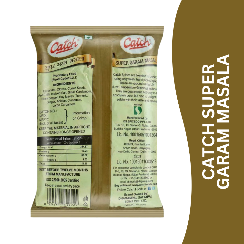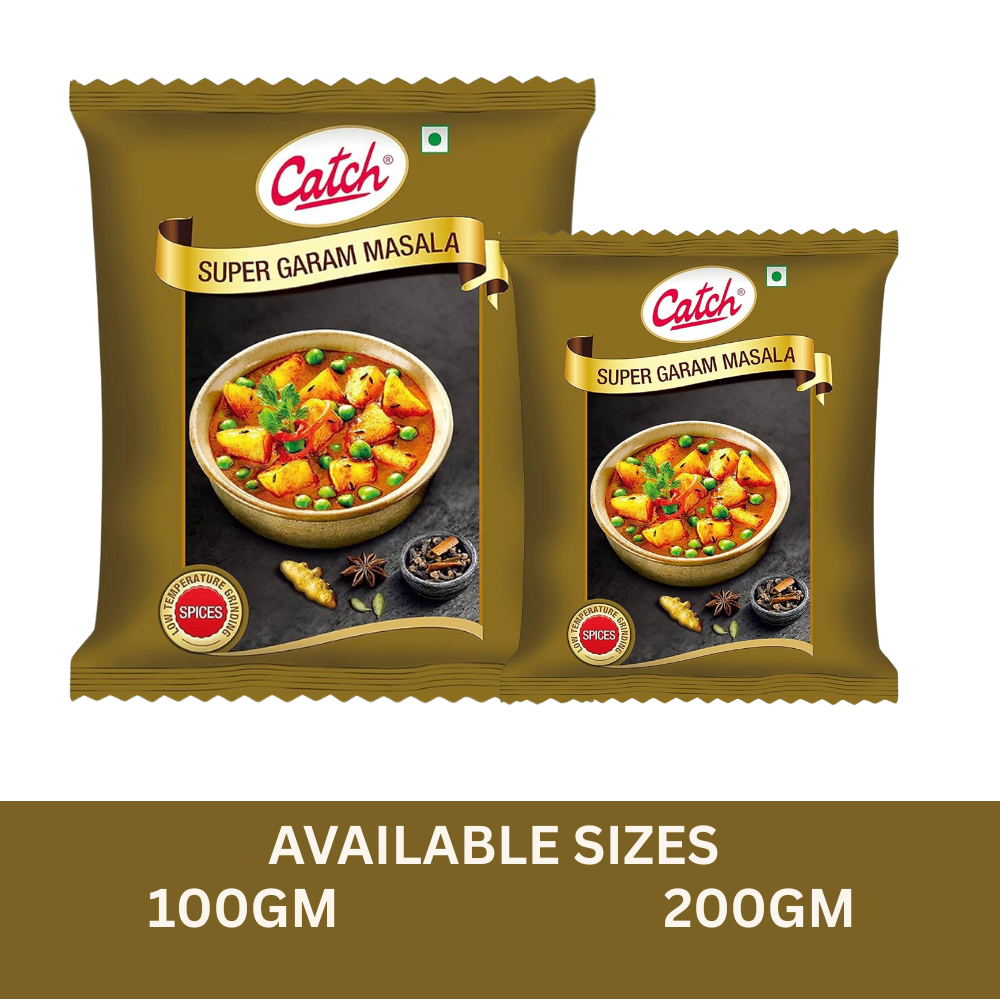 Catch Super Garam Masala is a premium blend of carefully selected aromatic spices, finely balanced to deliver a strong, lingering aroma and deep flavour. Added towards the end of cooking, this masala elevates curries, vegetables, dals, and gravies with a bold, authentic Indian taste.