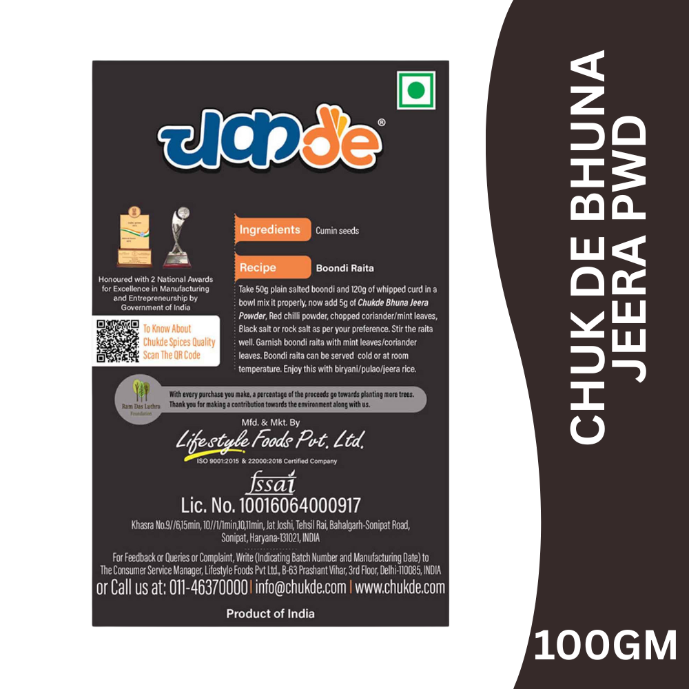 Chuk De Bhuna Jeera Powder is made from carefully selected cumin seeds that are expertly roasted and finely ground to enhance their natural aroma and earthy flavour. The roasting process gives this jeera powder its signature smoky note, making it perfect for everyday cooking and digestive preparations.