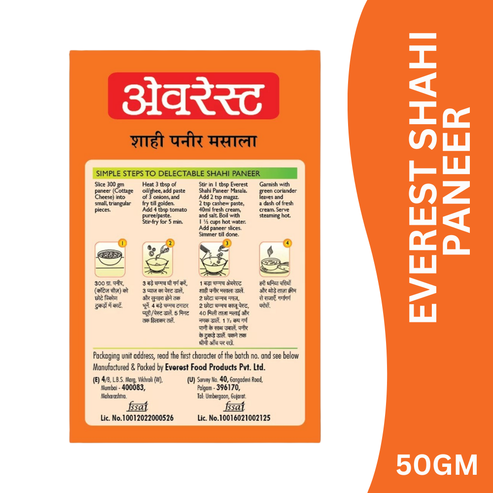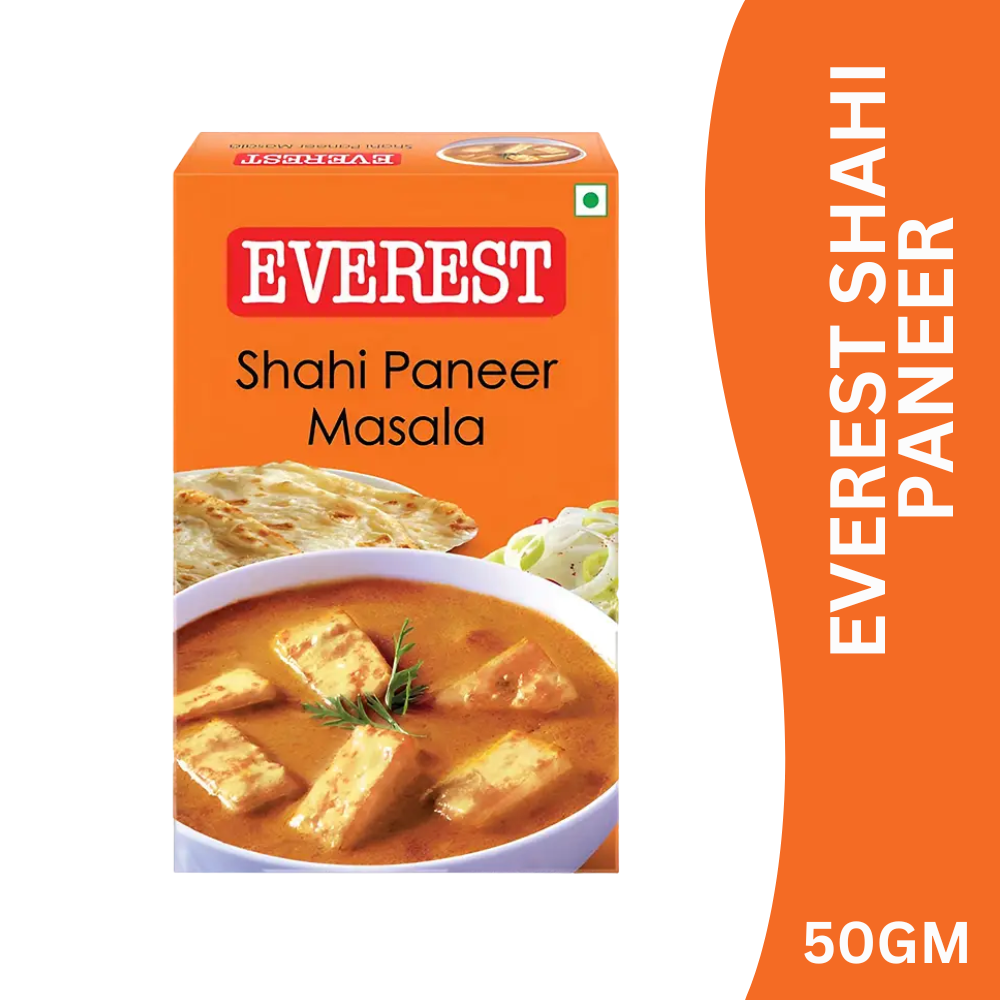Everest Shahi Paneer Masala is a luxurious blend of premium aromatic spices specially crafted for classic Shahi Paneer. It delivers a rich, mildly spicy flavour with a smooth, creamy finish and royal aroma, giving your paneer gravies an authentic Mughlai and restaurant-style taste.