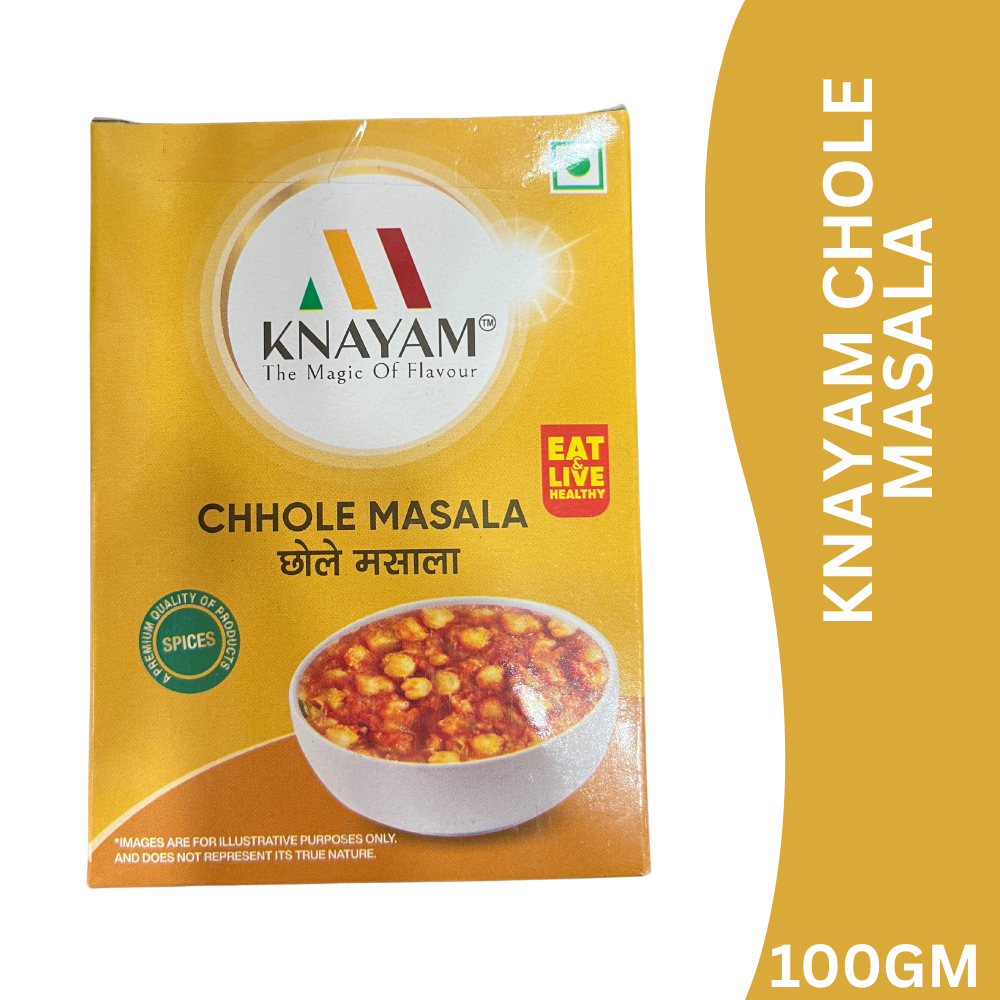 KNAYAM Chole Masala is a specially blended mix of premium spices crafted to enhance the taste, aroma, and colour of traditional chole (chickpea curry). This 100 g pack is perfect for everyday cooking, delivering bold yet balanced flavour for thick, delicious chole just like restaurant and dhaba-style preparations.