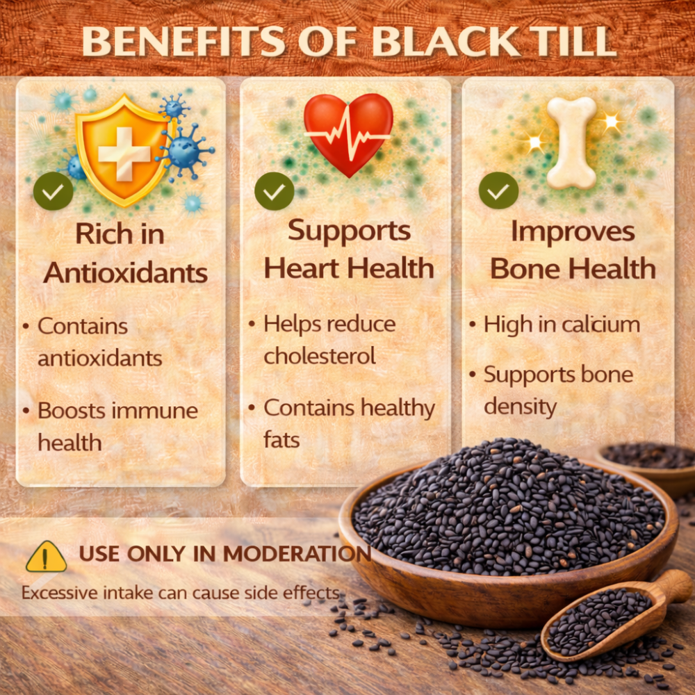 KNAYAM Kala Til consists of carefully selected premium black sesame seeds that are hygienically cleaned and packed to preserve their natural flavour, aroma, and nutritional value. Known for their bold taste and crunchy texture, these seeds enhance both savoury and sweet recipes.