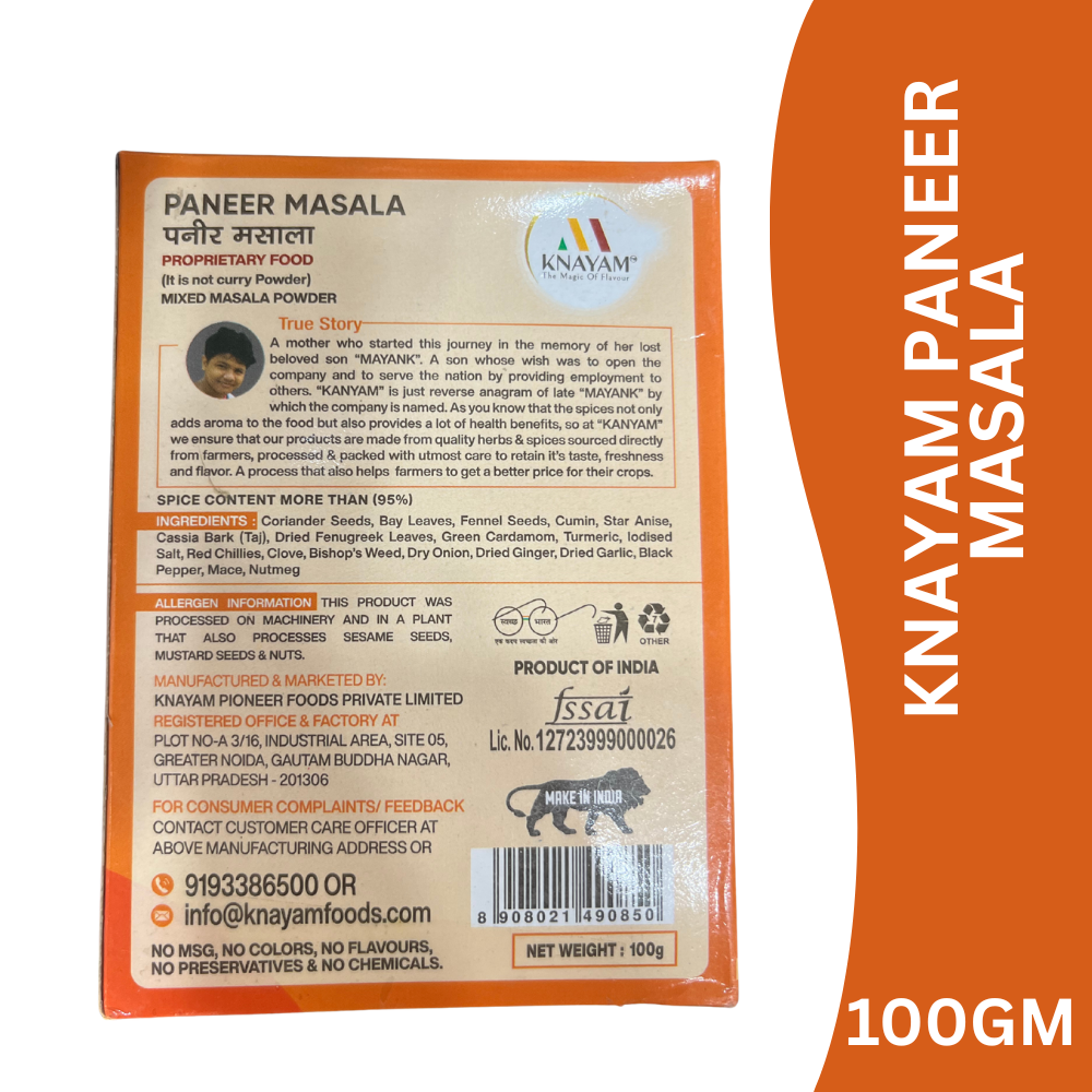 KNAYAM Paneer Masala is a premium blend of aromatic spices specially crafted to enhance the taste, aroma, and richness of paneer preparations. With a perfectly balanced spice profile, it delivers authentic North Indian and restaurant-style flavour in every bite.