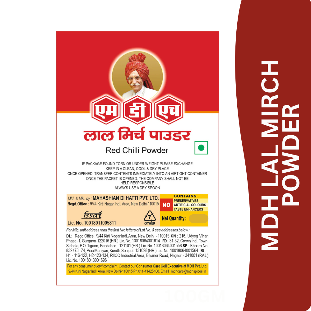 MDH Lal Mirch Powder is made from carefully selected high-quality red chillies that are hygienically dried and finely ground to deliver strong pungency and rich colour. It adds the perfect level of spice to Indian dishes, enhancing both taste and aroma for authentic, flavour-packed cooking.