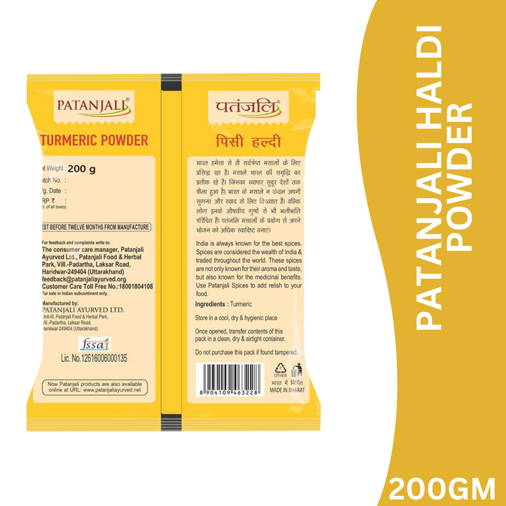 Patanjali Haldi (Turmeric) Powder is made from carefully selected turmeric roots that are hygienically processed and finely ground to preserve their natural colour, aroma, and essential goodness. A staple in Indian kitchens, haldi adds warmth, flavour, and a vibrant golden hue to everyday meals.