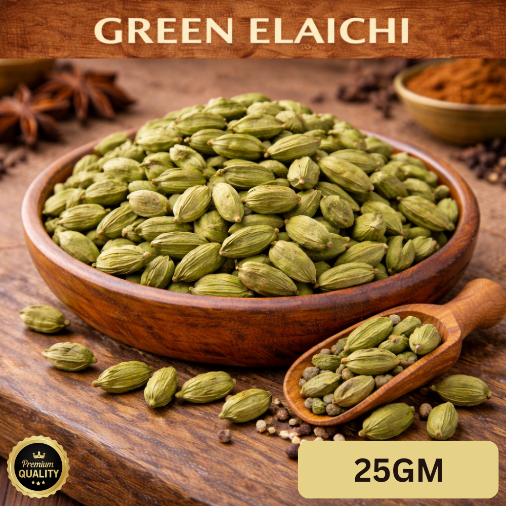 RUDRA Green Elaichi consists of carefully selected premium green cardamom pods that are hygienically cleaned and packed to preserve their natural fragrance, sweetness, and warm flavour. Known as the “Queen of Spices,” green cardamom enhances both sweet and savoury recipes with its luxurious aroma.