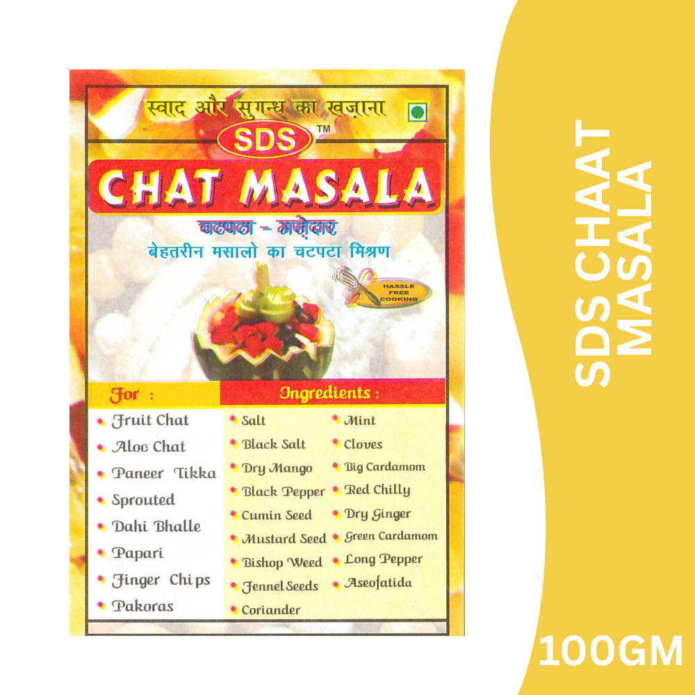 SDS Chaat Masala is a zesty blend of carefully selected spices that delivers the perfect balance of tang, spice, and aroma. Just a sprinkle transforms fruits, chaats, salads, and snacks into irresistibly chatpata treats with authentic street-style taste.
