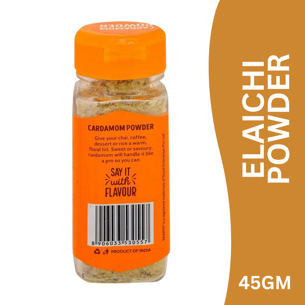 Snapin Cardamom Powder is made from carefully selected premium green cardamom pods that are hygienically cleaned and finely ground to preserve their natural fragrance, sweetness, and warm flavour. A prized spice in Indian kitchens, it enhances both sweet and savoury recipes with its luxurious aroma.