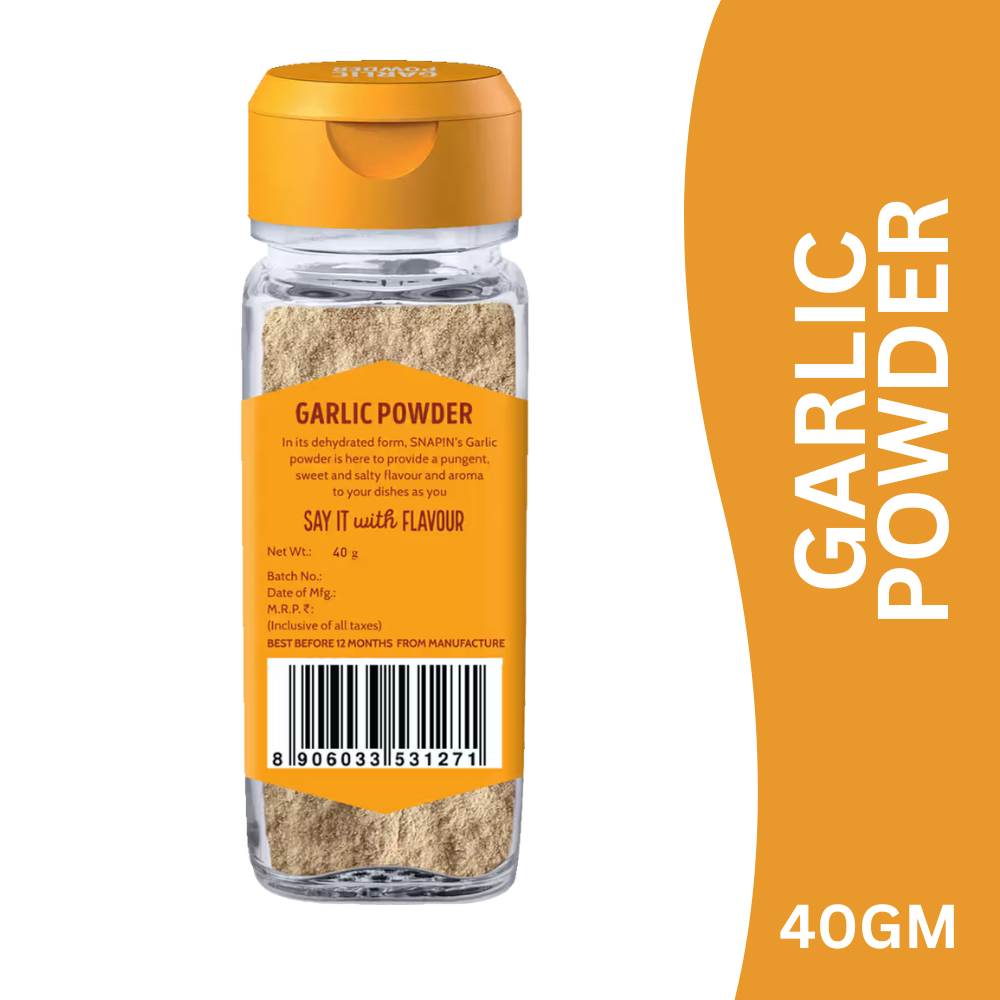 Snapin Garlic Powder is made from carefully selected premium garlic cloves that are hygienically processed and finely ground to preserve their natural aroma, flavour, and pungency. This versatile seasoning enhances both Indian and international recipes with a deep, savoury garlic taste.