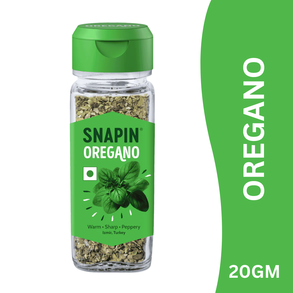 Snapin Oregano is made from carefully selected dried oregano leaves, finely processed to retain their natural aroma, flavour, and freshness. This classic herb adds a mild, slightly peppery and earthy taste, making it perfect for Italian, Continental, and modern fusion recipes.
